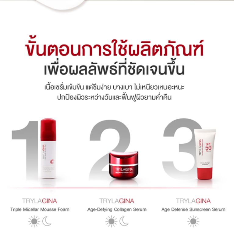 Trylagina Age-Defying Collagen Serum 12X เซรั่มเข้มข้น ตัวช่วยที่ดีที่สุดในการกอบกู้ผิวให้กลับมาอ่อนเยาว์อีกครั้ง ด้วยพลังคอลลาเจน 12X ผสานเทคโนโลยีล้ำสมัยจากญี่ปุ่น แก้ไขทุกปัญหาผิวกวนใจ พร้อมเติมเต็มริ้วรอย ลดเลือนความหย่อนคล้อย และช่วยกระชับผิวหน้าให้เต่งตึง รูขุมขนกระชับ เติมความชุ่มชื้นให้ผิวอิ่มฟู ตอบโจทย์ทุกปัญหาผิวหน้าไม่ว่าจะเป็นริ้วรอย ผิวหย่อนคล้อย หมองคล้ำ ไปจนถึงผู้ที่ต้องการบำรุงผิวให้นุ่มชุ่มชื้นยาวนาน