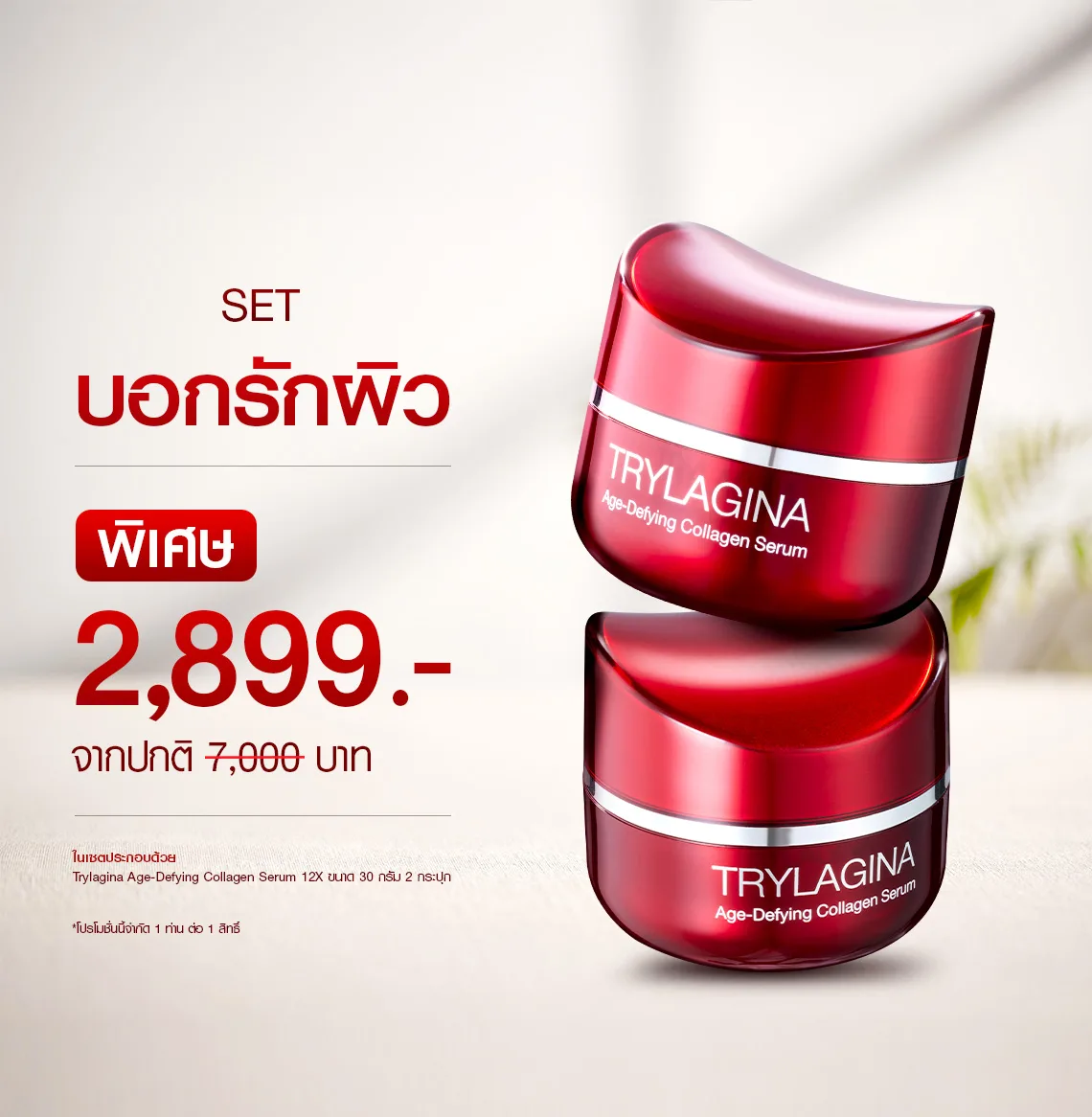 Trylagina Age-Defying Collagen Serum 12X เซรั่มเข้มข้น ตัวช่วยที่ดีที่สุดในการกอบกู้ผิวให้กลับมาอ่อนเยาว์อีกครั้ง ด้วยพลังคอลลาเจน 12X ผสานเทคโนโลยีล้ำสมัยจากญี่ปุ่น แก้ไขทุกปัญหาผิวกวนใจ พร้อมเติมเต็มริ้วรอย ลดเลือนความหย่อนคล้อย และช่วยกระชับผิวหน้าให้เต่งตึง รูขุมขนกระชับ เติมความชุ่มชื้นให้ผิวอิ่มฟู ตอบโจทย์ทุกปัญหาผิวหน้าไม่ว่าจะเป็นริ้วรอย ผิวหย่อนคล้อย หมองคล้ำ ไปจนถึงผู้ที่ต้องการบำรุงผิวให้นุ่มชุ่มชื้นยาวนาน